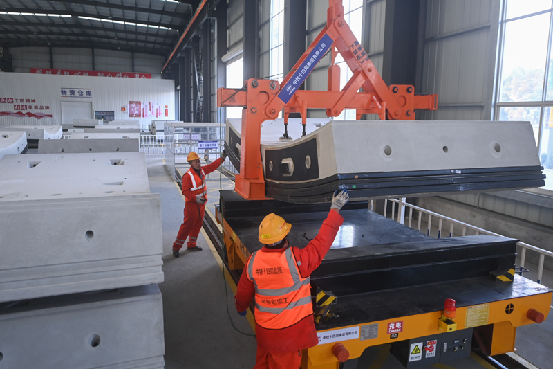 12月24日,中铁十四局技术人员在甬舟铁路金塘海底地道项目部加工仓储中心装运管片,将于地道内进行组装作业。